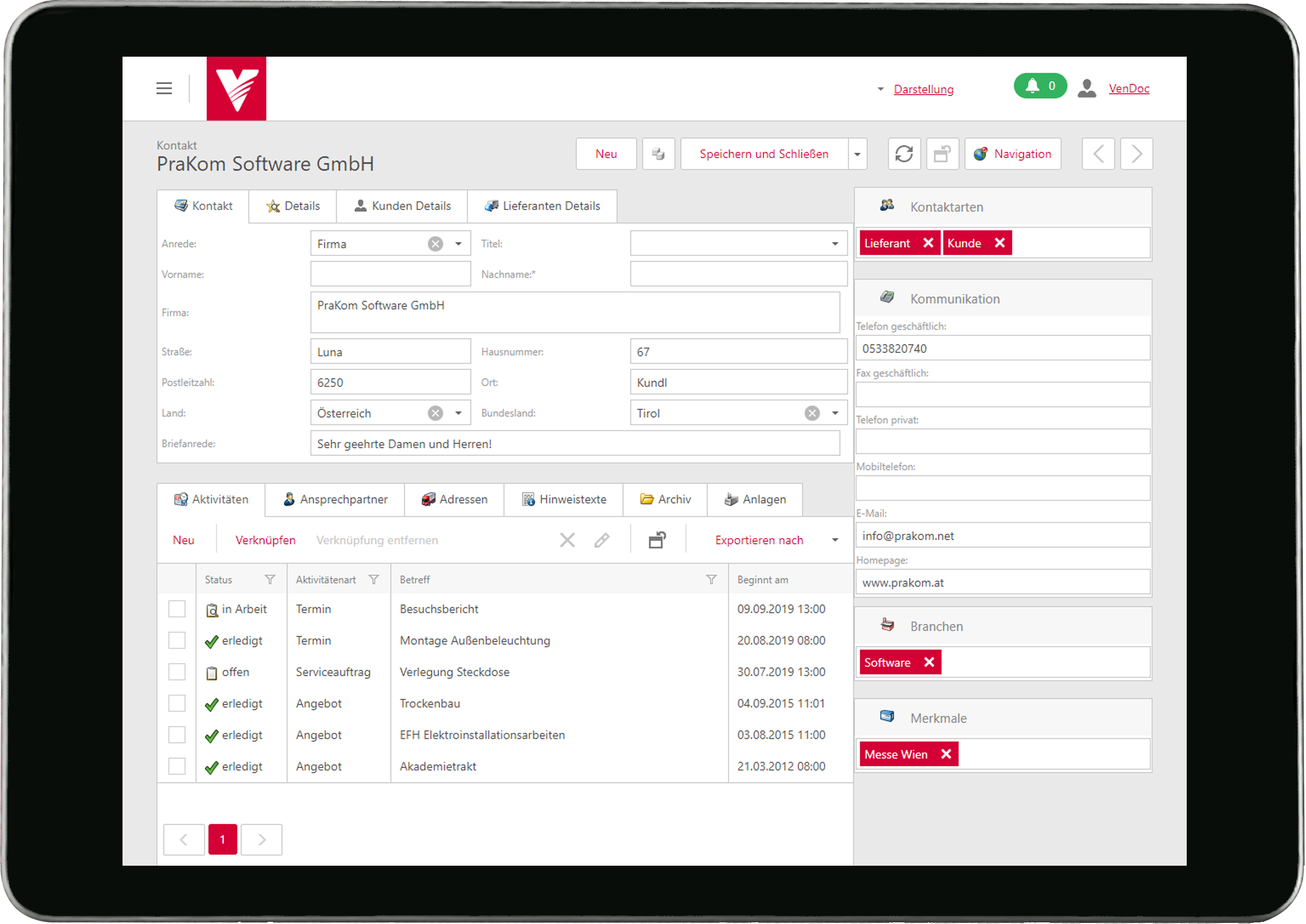 Der VenDoc Web Client ist die Webapplikation für den Außendienst und die mobile Serviceabwicklung.